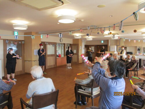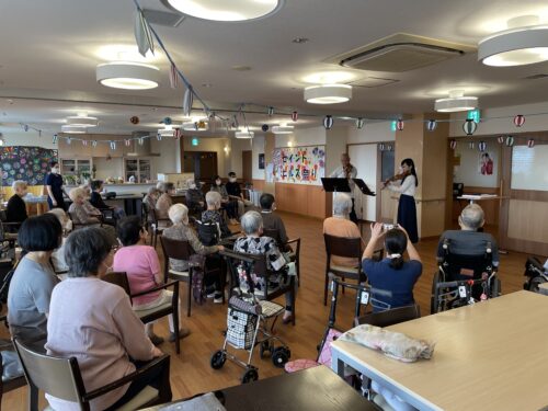 午後の部は「職員による余興」と「ニコイチバイオリンさん」による演奏を楽しんで頂きました。ニコイチバイオリンさんは昨年に引き続き、今年も来て頂くことができ、入居者の皆さまから大きな拍手が送られていました。
